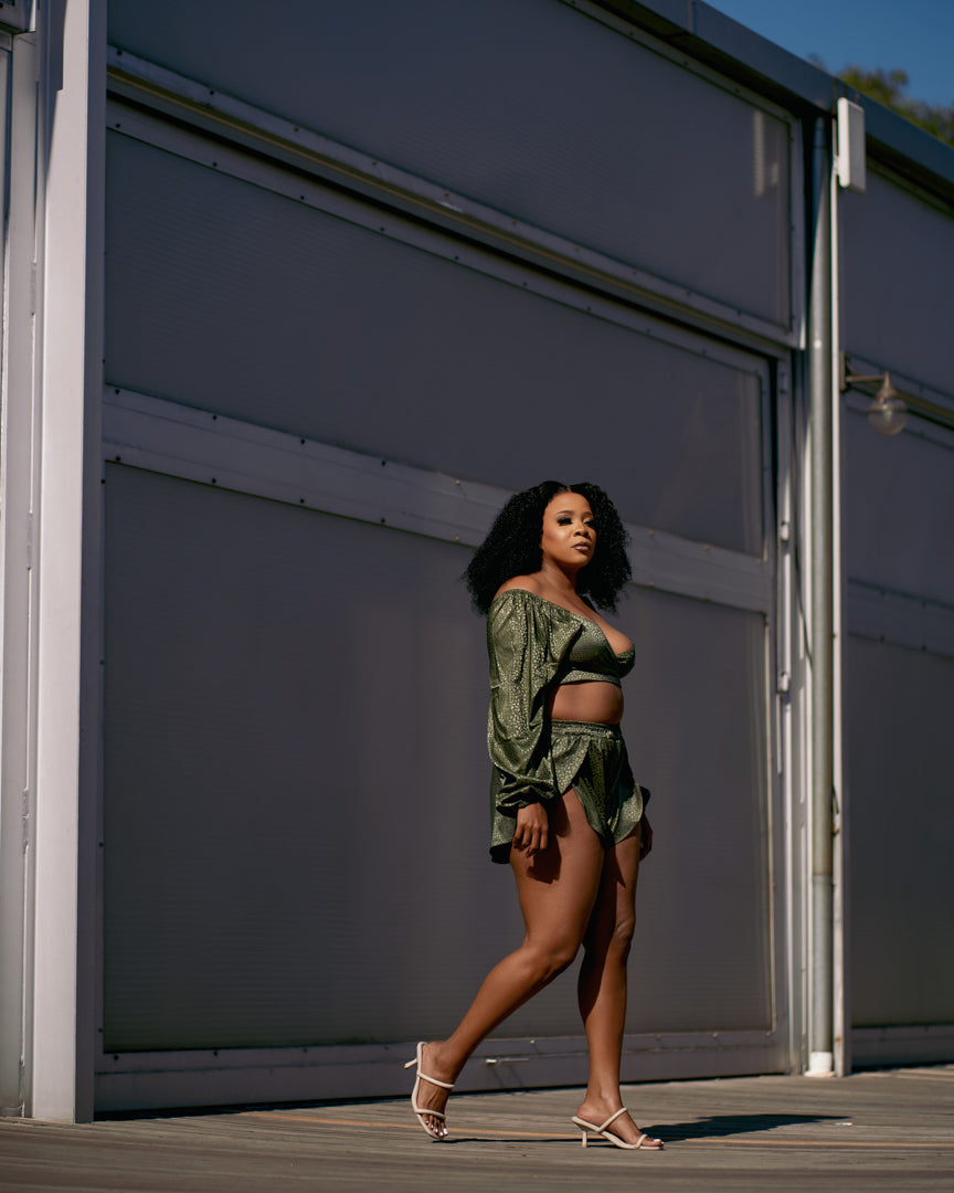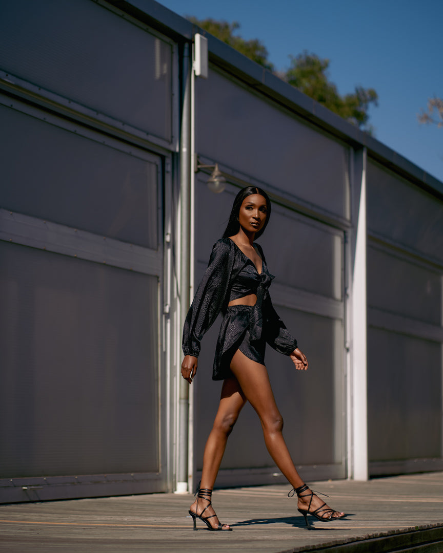 A beautiful silky patterned set that can be styled up or down.